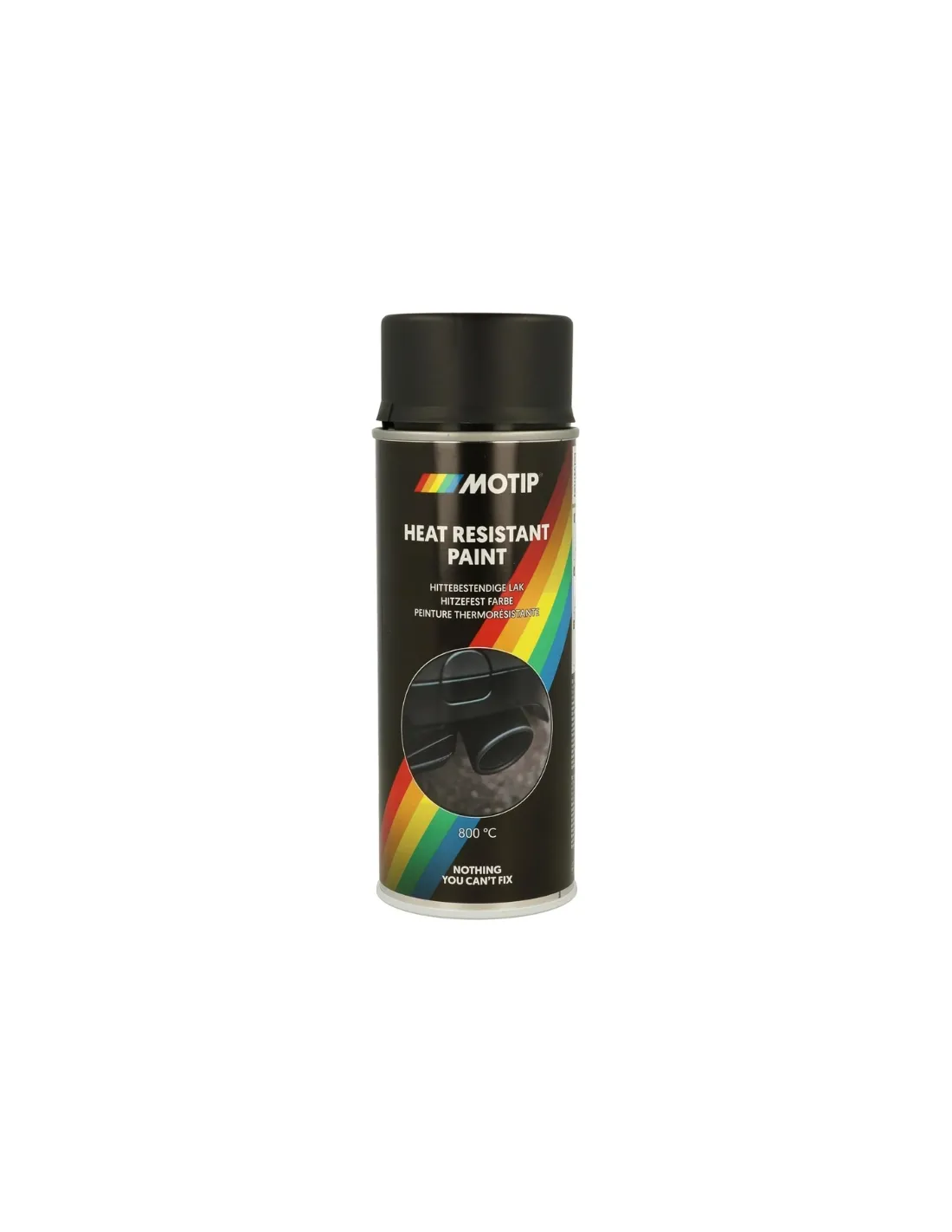 Pintura en spray resistente a altas temperaturas, ideal para superficies expuestas al calor extremo como tubos de escape, motores, estufas y chimeneas. La Pintura Alta Temperatura MOTIP soporta hasta 800 °C, es resistente a la gasolina, productos químicos y a la intemperie, garantizando una protección duradera y un acabado mate profesional.