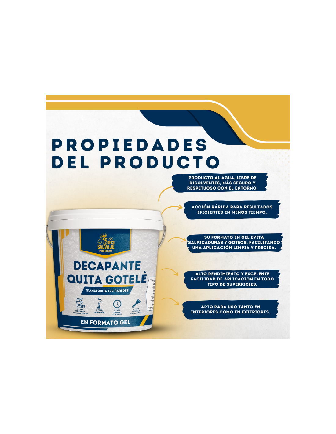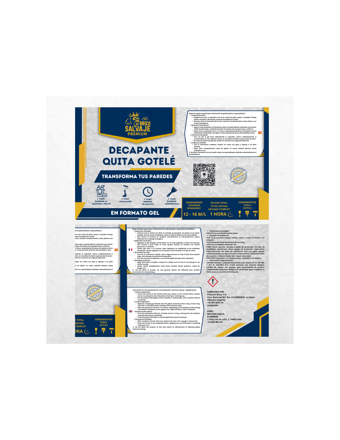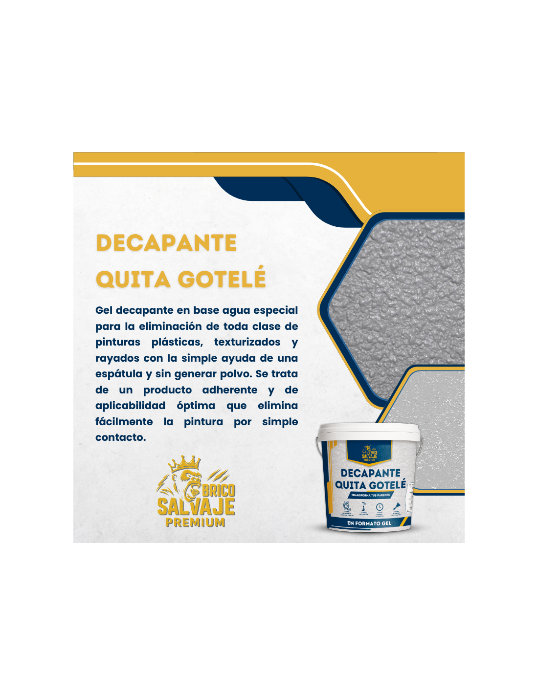 Cette solution vous offre le moyen le plus économique pour lisser les murs de votre maison. De plus, vous pouvez le faire vous-même, car c’est tellement facile que vous n’aurez pas besoin d’engager un professionnel du bâtiment. Chaque pot de 750 ml de notre décapant Quita Gotelé Bricosalvaje couvre environ 5 m², ce qui signifie que vous pourrez avoir des murs lisses sans gros travaux et à un coût très bas par mètre carré.