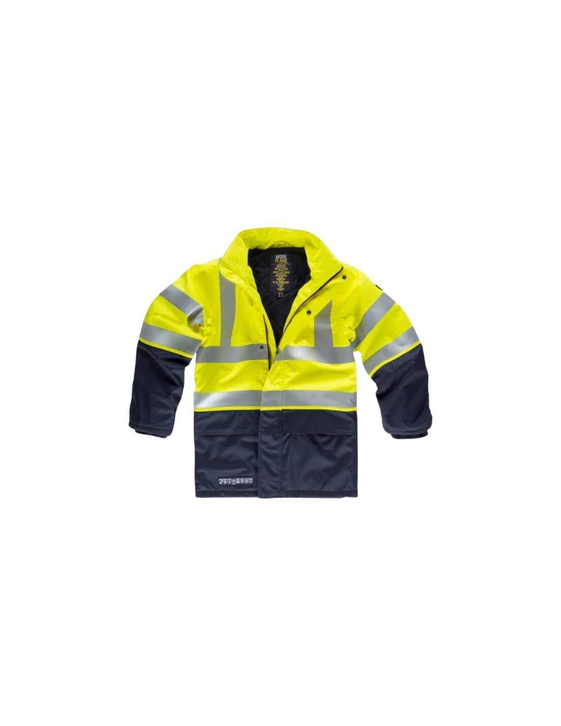 - Material ignífugo: Esta parka está fabricada con un material ignífugo que proporciona protección contra el fuego y las llamas, ideal para entornos de trabajo donde existe el riesgo de exposición a calor intenso o incendios.